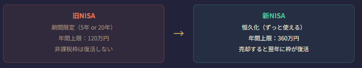 - 旧NISAの資産は新NISAに自動移行されないので要確認