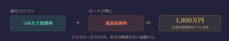 | つみたて投資枠 | 120万円 | 長期積立向け投資信託 |
