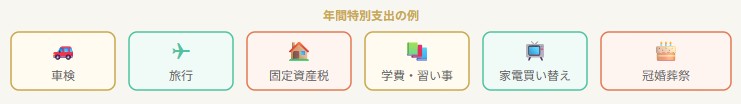 - 年間の特別支出をリストアップしてボーナスを計画する