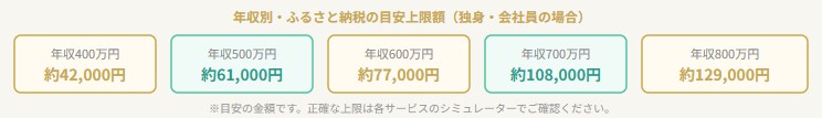 03ふるさと納税の上限額を再計算するふるさと納税の控除上限額は年収によって変わります。昇給があった年はそのまま去年の上限額で納税すると、損をしている可能性があります。4月に年収の見込みが立ったタイミングで、シミュレーターで上限を再計算してみましょう。